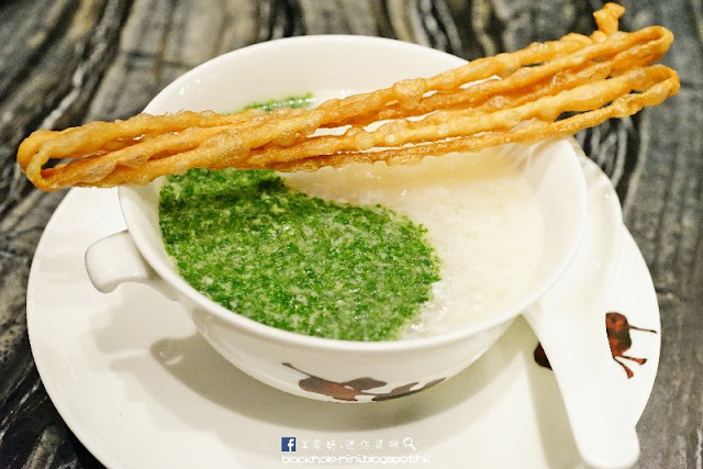 糟鹵鵝肝、毛豆、雞頭米。鵝肝入口甘香幼滑;蓮霧酸梅蕃茄最有驚喜,小蕃茄裡面釀了蓮霧和忌廉芝士,味道很豐富,清新開胃。鴛鴦燕窩雞粥、麻油茶。綠色的部分是切碎了的薺菜,帶麻油香,而白色的是燕窩雞粥,啖啖足料燕窩,一個碗裡吃到兩種不同的風味。