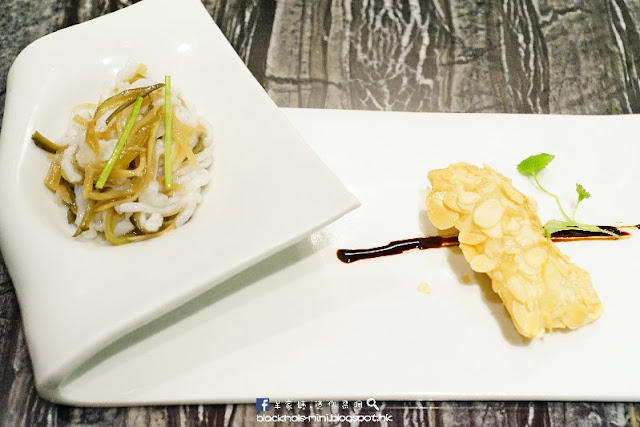 雙味桂魚(瓜姜炒、杏香炸)。桂魚絲瓜姜炒,魚肉滑,瓜姜爽脆,雙重口感。杏香炸桂魚裡面除了桂魚絲還有蜜瓜,出乎意料的帶點甜味,味道層次豐富。