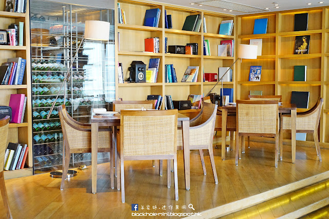 餐廳VUE裝潢走歐陸風格,出電梯就看到牆上掛滿了大大小小色彩豐富的碟子。沿著長廊走到用餐區,佈局以客廳、書房和廚房為主題,裝潢風格時尚獨特。