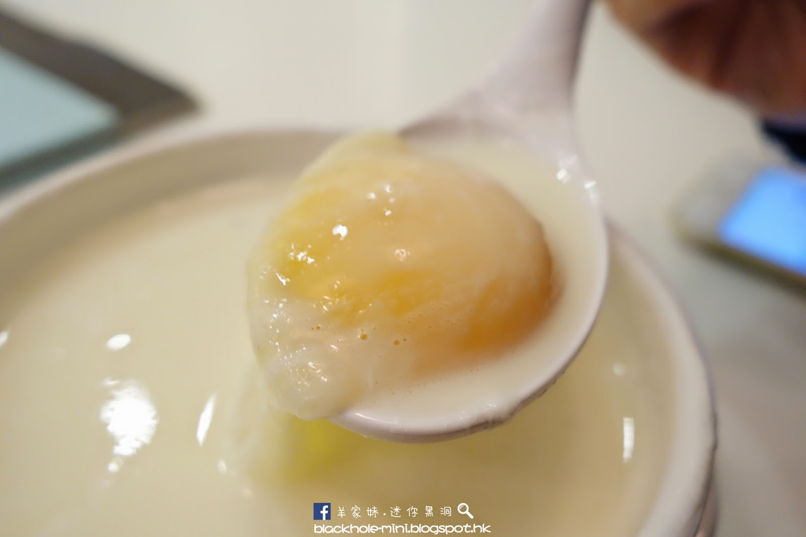 甜品的款式都算挺多,分別是盛宴系列、日式系列和法式系列,日和法兩個系列每項只有約十款,盛宴則有很多,但其實都是中式糖水、豆腐花、西米露等等。鮮奶燉圓肉窩蛋。中式燉糖水大同小異,這款還是第一次見。味道不會太甜,只有圓肉的甜味,加隻雞蛋,吃之前攪拌一下,感覺都挺滋潤。