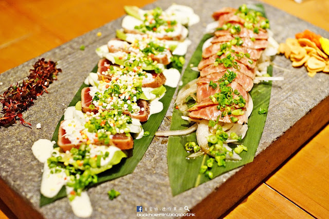 好久沒來炎丸了,要不是有食友相約到訪,也不知道原來多位主廚合力籌備多月的全新餐牌已經上場,不單增加了原始燒及爐端燒食材選擇,還添加了不同地道系列菜式。火炙吞拿魚漬配牛油果伴青芥茉汁和火炙鹿兒島和牛伴松露柑橘醬油。兩款頭盤都很清新,加上沾醬的點綴,令味道層次更豐富。