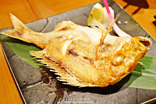 連子鯛。上次來試過喜知次燒魚,今次改為連子鯛,肉質似乎沒有喜知次般嫰滑,有點偏乾,不過格價比喜知次相宜得多,想吃原條燒魚的朋友也可以考慮一下。