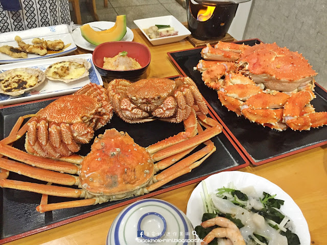 排場不用多說,單看照片已感受到氣勢。每兩人分享兩隻毛蟹、一隻松葉蟹和一隻皇帝蟹,還有蟹腳shabu shabu、刺身、蟹飯、蟹麵豉湯和炸物等等,雖然那些炸物已經冷了入口感覺不太好,但單吃蟹的話已值回票價。