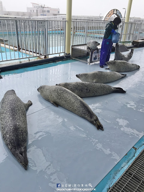 剛剛可以趕上十點半的海豹見面時間。海豹館的閘口沒有售票員,投幣200Yen就可以進去,裡面地方不大,但有一半地方是露天的,因天氣太冷唯有先躲在室內的海豹資料館等著,待十點半才到上層看海豹表演。