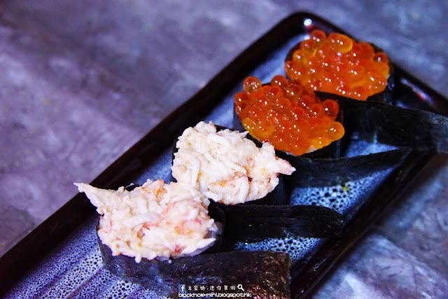 師傅一件一件慢慢做,我們各點了兩件,有蟹沙律、三文魚籽、火炙左口魚邊,左口魚邊可以做壽司也可做軍艦。本來沒有很大期望,純粹覺得開貨車賣壽司很特別,沒想到師傅的手藝還真不錯,米飯搓得好,稍微烤過的左口魚邊滿口油脂香,三文魚籽跟蟹沙律也好吃,結果我們又追加了每款各兩件。