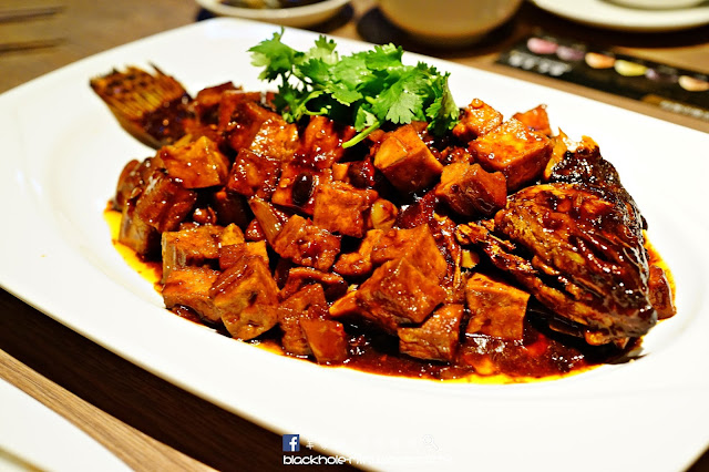 麻婆豆腐烤魚。麻婆豆腐吃過不少,配烤魚還是第一次吃到,而且味道非常有驚喜,桂花魚肉滑溜,與炸過的豆腐粒淋上濃郁的醬汁,麻而不辣,很不錯的一道新菜式。
