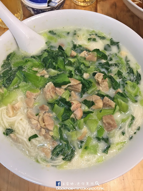 先看一看餐牌,麵類的好像跟紅磡那間差不多,不知道是不是真的有點關係。看著店內幾乎一半的客人都在吃嫰雞燴麵,自己也是因它而來,當然也叫一客。奶白色的湯底真的很濃郁,雞肉很夠味而吃起來有點像用了鹹雞般濃味,另麵條是略有彈性的,不像在別家吃的那樣軟爛,但整體來說的確做得很好,難怪是這裡的名物。