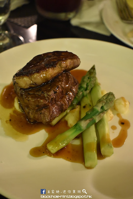 跟著來了香煎牛柳配法國鵝肝,先試一口鵝肝而入口感覺油潤,好此物者應會覺得不錯,另牛柳火喉剛好,切開仍看到一點嫩紅而吃來也無渣。