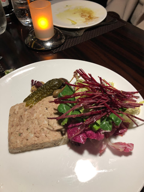 前菜沙律來了自家製豚肉批配有機田園沙律,而這個沙律的焦點都給份量不少的豚肉批搶去了。