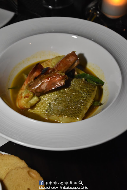 主菜先送上海鮮類的法式海龍皇海鮮大燴,這個海鮮大燴有點Bouillabaisse的影子,湯中除了魚跟蝦的鮮甜,還帶點香草的味道在口中徘徊。