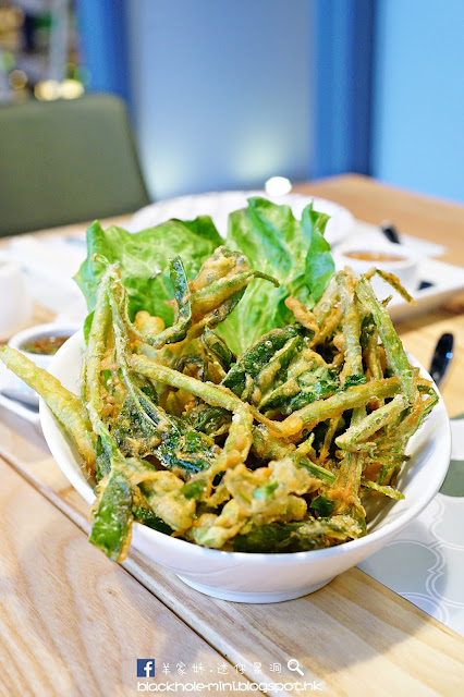 炸通菜。好像第一次吃炸通菜,裏著炸漿炸成香脆版,菜葉新鮮無渣,大廚建議沾著秘製滋味沙嗲醬吃,不過其餘四款沾醬也很適合,視乎個人喜好。