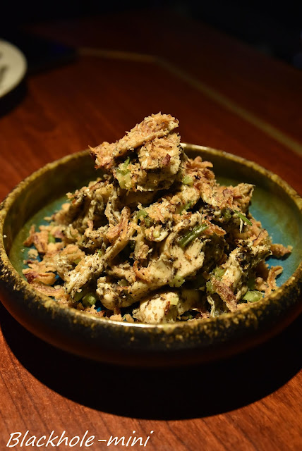 各自選了一些菜另亦點了mocktail,一杯是充滿芒果香甜味的,另一杯是清女新綠茶base的creamy特飲。松香走地雞先來。走地雞肉已經起骨去皮,配合炸乾蔥芹菜粒等,再混合黑松露醬後吃起來啖啖肉,要是可加點爽脆的食材如青瓜椰菜紫等,口感應更豐富。