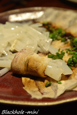 手切跳神肉上場。跳神肉其實跟蒜泥白肉有點相似,不過這裡的豬腩肉片切得很薄,肥瘦均勻的肉片卷著滑滑粉皮,配以帶甜的香蔥和蒜泥醬汁,是很開胃的前菜。