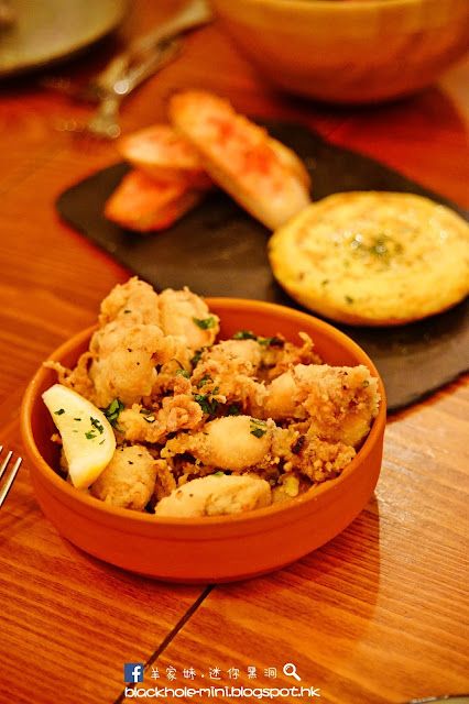 安達盧西亞式炸魷魚。包圍著魷魚寬的炸漿吃來不太厚,而魷魚入口彈牙,感覺是頗新鮮的貨色。