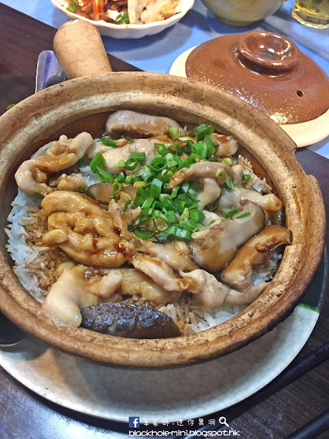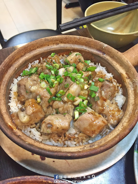 這裡的煲仔飯都帶有飯焦,對於不特別愛飯焦的自己來說,是因不喜歡飯焦太硬和痴牙的感覺,而今天的飯焦不太硬也不算很痴牙,所以沒有太過抗拒。 先試了排骨煲仔飯。排骨醃得很入味,飯也夠乾身,雖是最普通的口味但卻最得自己歡心。