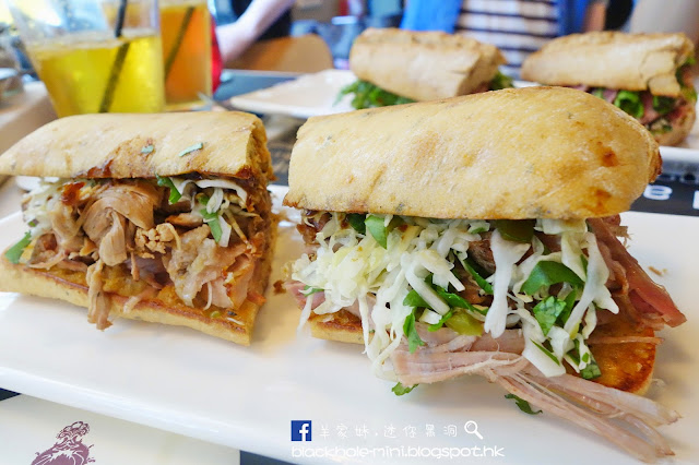 Veggie Sandwich ($88) and Pulled Pork Chipotle, Dr. Pepper glaze, jalapeno, cabbage slaw in a sweet roll bread ($98)。三文治份量也不小,裡面夾著的配料實在有夠澎湃,想一口咬也不易。是日品嚐了素食三文治,有烤過的彩椒、青瓜和香草,而烤過的蔬果特別juicy,味道也不單調,比想象中美味。另外手撕豬肉三文治也不錯,夾雜著墨西哥辣椒及椰菜絲沙律,整體味道清新不膩。 1/2 rotisserie chicken and baked potatoes ($88)。$88有半隻烤雞真的抵吃,烤雞水準還不錯的,加上烤過的薯仔,作為午餐絕對夠飽。