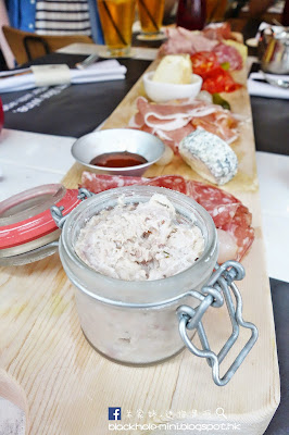 Scarlett 1 meter Board (5 cheese, 5 cold cuts, 1 paté)。第一道菜已帶來驚喜,一米長的木板上放了五款芝士、五款cold cut和一款肉醬,還有用了很久沒見過,放一副麻雀的鋁製鐵箱放麵包,感覺相當有趣。