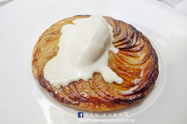 Warm Molten Chocolate Cake ($68)。大概是朱古力蛋糕太熱的關係,放在上面的雲呢拿雪糕很快就溶了。朱古力蛋糕的中心呈半溶狀態,朱古力味濃郁又帶酒香,配上冰凍的雪糕,愛吃甜的朋友不要錯過!Apple Tart Fine ($68)。烤成金黃色的蘋果批,放著切得薄薄的蘋果片,整齊地排列在批面上,賣相非常吸引,味道帶蘋果淡淡的酸甜清香。