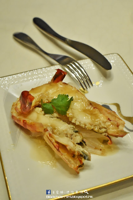 花雕酒釀大明蝦是菜式未到,香味先行的菜式,當中的花雕酒香在佳餚上檯前已先聲奪人,空氣中都瀰漫著花雕味,大蝦除了肉質爽彈,當然也少不了花雕的香甜。