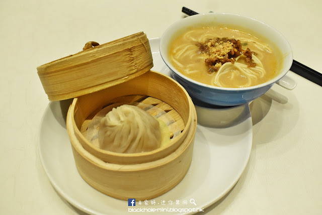 到了這時間其實大家也夠飽,就算要吃點粉麵之類也只能小勺一下,這個擔擔湯拉麵的份量就真的剛好,醬也做得夠濃。另高湯小籠包的湯汁不少,隔住透薄的外皮可隱約看到湯汁浸滿了肉餡,而湯雖清卻仍帶肉汁鮮甜。