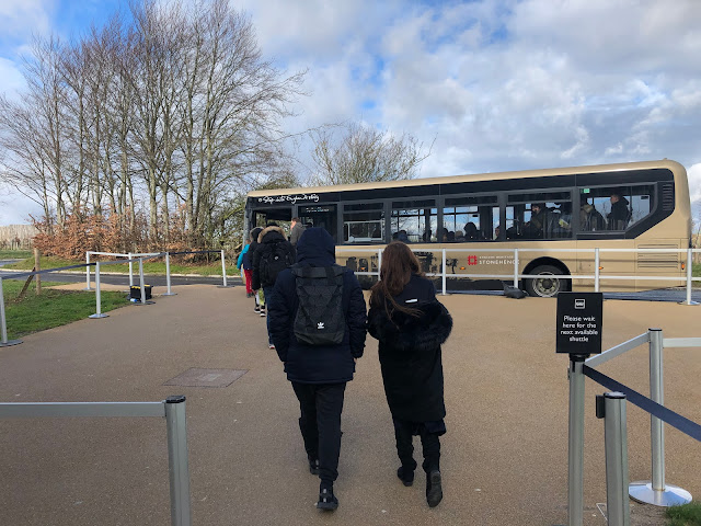 到巨石陣要先在遊客中心旁坐接駁巴士,不坐巴士也可以徒步大概半個小時左右到那裡。