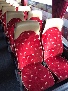 這架是雙層旅遊巴座位先到先得,因我們排得前,所以選了上層第一排的座位。