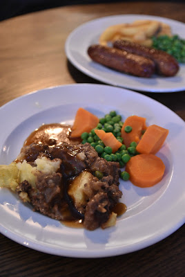 食物在旅程開始已選好,我們點了Cottage Pie和Sausage and Chips,另外還有fish and chips和mushroom risotto可選。