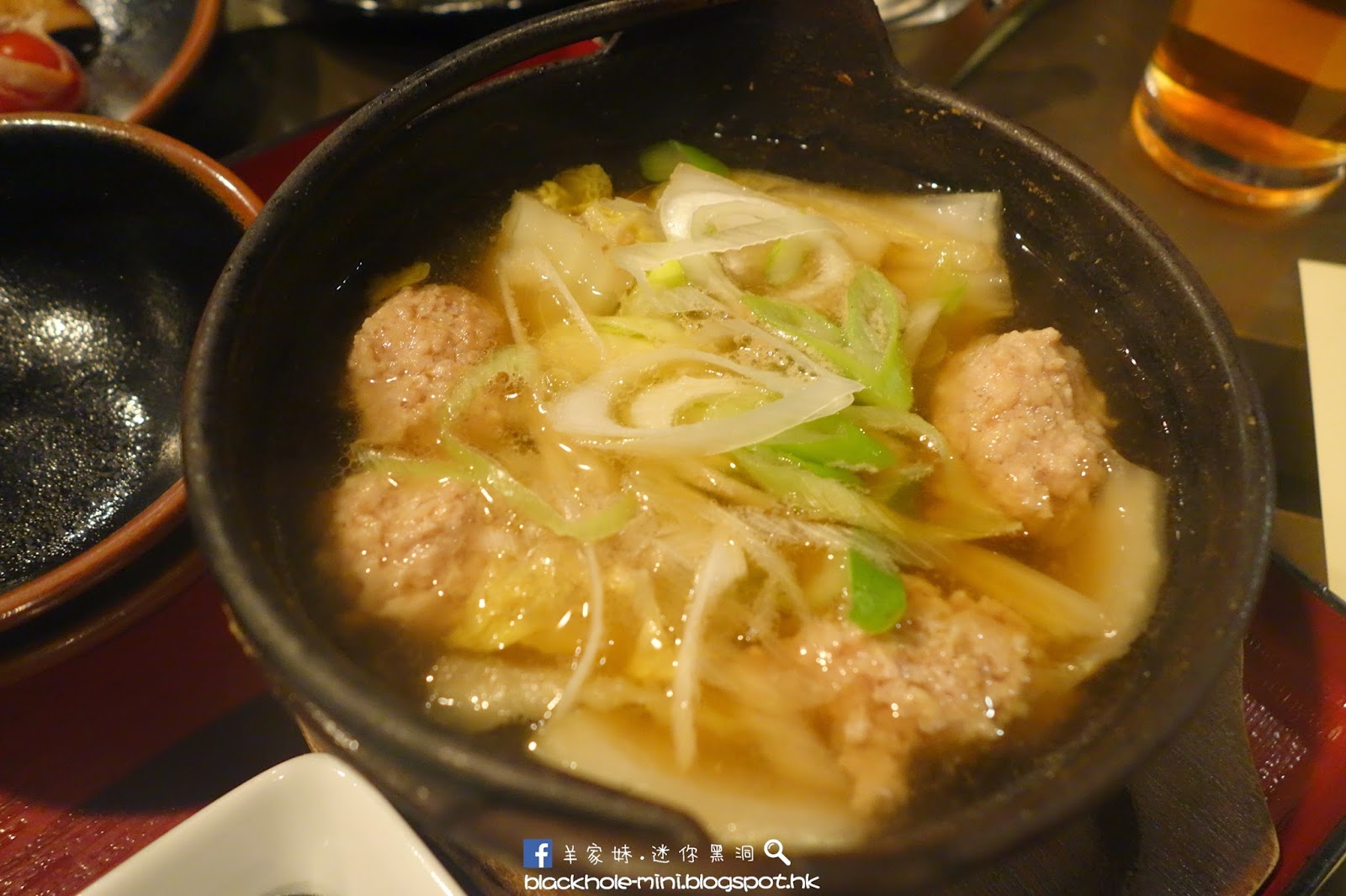 雞肉丸子鍋。純粹是想喝點熱湯才叫的,湯底是醬油味噌味,偏鹹了點,雞肉丸子不錯,可沾一點柚子胡椒粉吃。