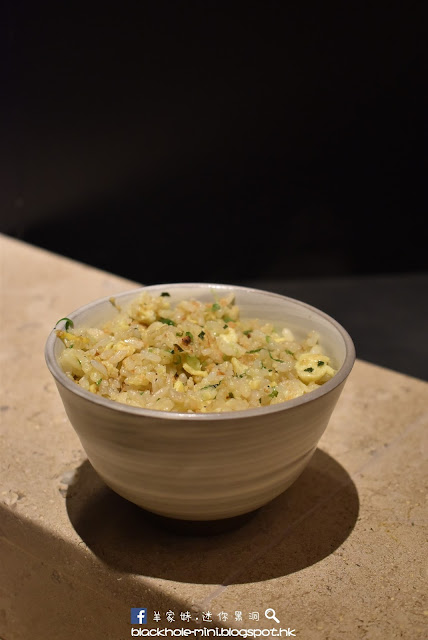 鐵板燒怎能沒炒飯?日式蒜蓉炒飯炒得有鑊氣,但蒜蓉味不算突出,反倒是加了紫蘇葉令食味更特別,是個味道較清淡的出品。