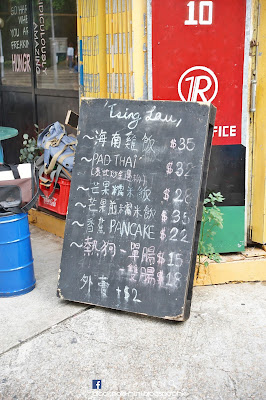 小小的店子就在轉角處,裝修有特色,不過坐位是有點擠迫,幾乎都要背對背坐。店內的桌椅都是藍色鐵罐,坐起來有點不習慣,因為雙腳不知放那裡才好。如果天氣不是太熱,坐在室外感覺也不錯。