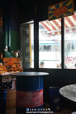 小小的店子就在轉角處,裝修有特色,不過坐位是有點擠迫,幾乎都要背對背坐。店內的桌椅都是藍色鐵罐,坐起來有點不習慣,因為雙腳不知放那裡才好。如果天氣不是太熱,坐在室外感覺也不錯。