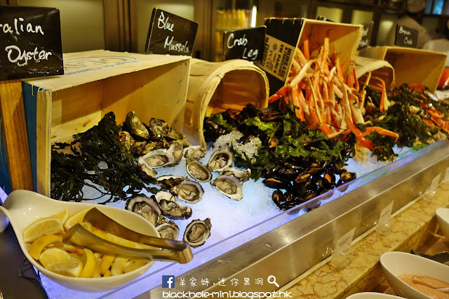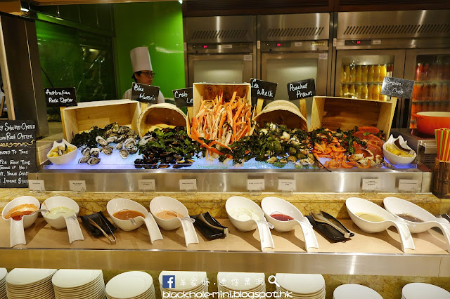 萬麗的頭盤海鮮算是很豐富,而且不是每家都會供應生蠔,另外還有青口、長腳蟹等,旁邊是刺身壽司吧,每次必吃的一定是甜蝦和帶子。