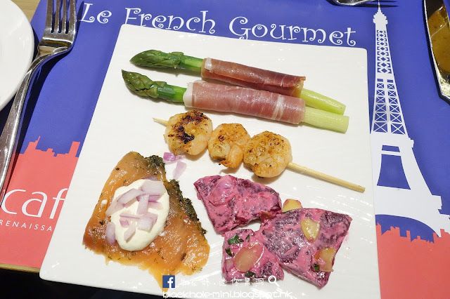 一年一度的法國五月又來了,記得去年也在萬麗咖啡室品嚐法式主題自助餐,今年也不例外,這裡推出了一系列在港比較少機會接觸到的法國阿爾薩斯美食,從頭盤、主菜到甜品,各有三款主題菜式,此外阿爾薩斯是著名的白葡萄酒產地,所以酒店亦特別準備了三款白酒供客人選擇。