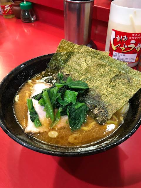 鬆弛點的壽司定食也像樣,Toro吃來油份足,穴子壽司也比想像中好。如果想在橫濱找壽司刺身吃,這家也是不錯的選擇。 吃完早餐在大型商場行逛了一會,就去找橫濱系拉麵。這家吉村家非常多人排隊,不過流轉也快不用等很久。 排隊前先到自動販賣機買票,點了一個普通和另一個多叉燒的拉麵。湯的濃度麵質的軟硬度和雞油的份量都可自己選擇,不懂日文的話店員會給你用紙去圈劃。