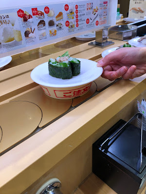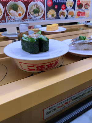 晚餐本來打算留在橫濱吃牛鍋,因在電視看到一家百年歷史的牛鍋店想試,可惜未有訂位吃不到,後來再多找幾家也全部滿座,只好先出發到今晚住宿的平塚市。 途中經過一家迴轉壽司店,決定先吃點東西再上路。這家迴轉壽司店的水準不錯,好像比上次吃到的魚米再好一點。 落單之後發生攪笑事件,由於每回只可點四樣食物,點好後沒留意壽司會怎樣送上,心中以為有人送來,而不一會點菜的ipad就會響,一開始也不理解,後來再點多些壽司還是沒人送來,才發現原來ipad每響一次,迴轉帶上就會出現己點的壽司而要自行取下啊。