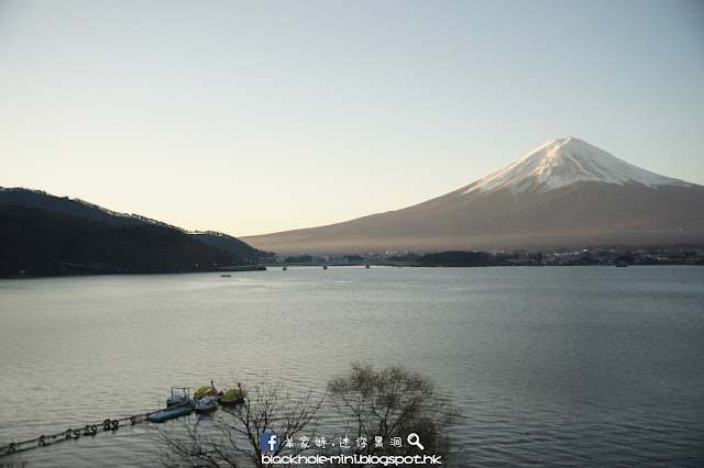 最後等到太陽慢慢升起,把富士山都染紅了,我們才到樓下吃早餐。