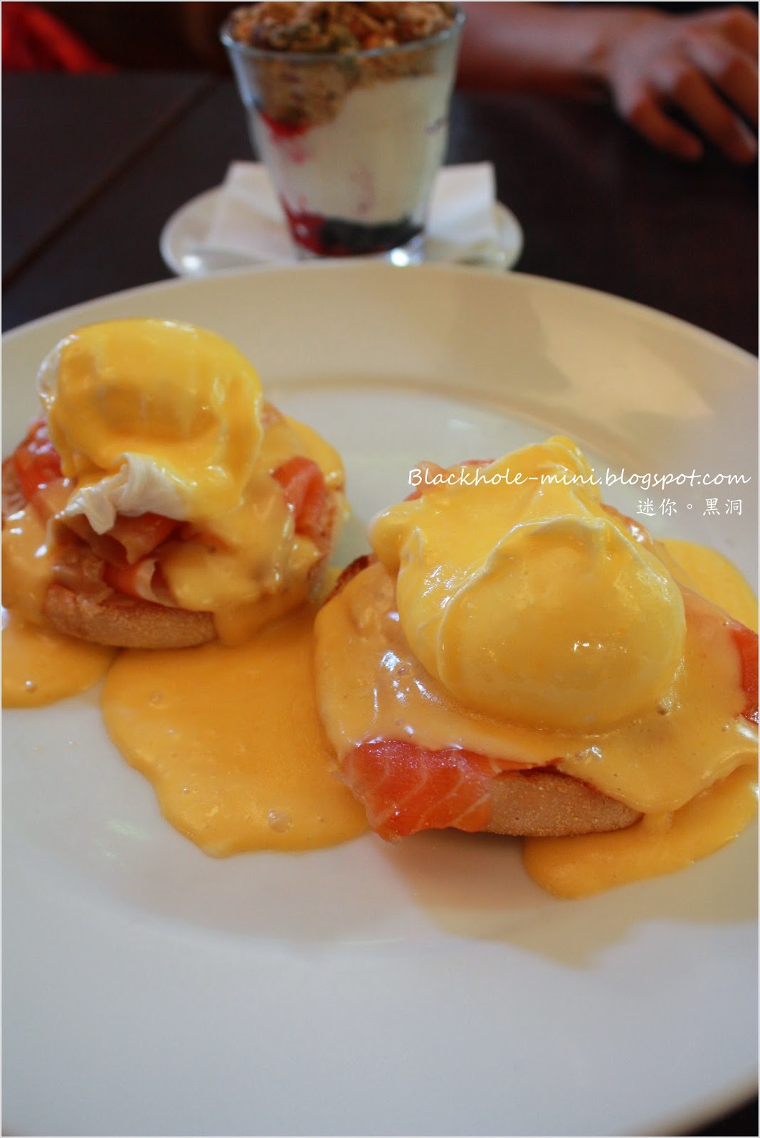 果度好多人黎買外賣,如果堂食既話搵個位坐低,佢就會俾個menu你。早餐選擇都唔少,不過因為我地趕時間,所以只係要左一個egg benedict加煙三文魚,另外仲點多左個Yoghurt with granola頂住先。