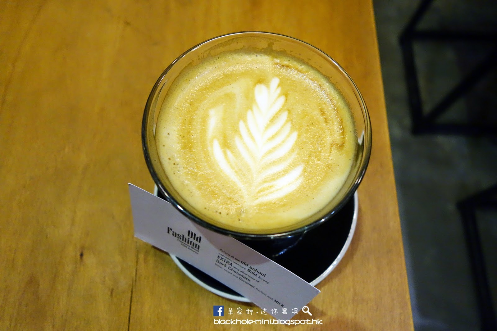 Caffè Latte (MOP36)。第一次去喝咖啡會奉上所用的咖啡豆的簡介,店員還簡單的介紹咖啡的味道。此款名為Old Fashion是混合了50%巴西豆與50%的墨西哥豆,Aftertaste帶黑朱古力與焦糖味,奶香亦濃,很不錯的一杯咖啡。