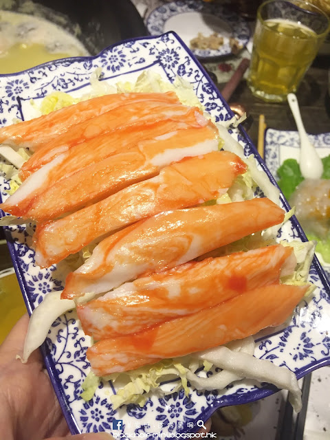 火鍋料價錢不算貴,上面的手打蟹子蝦滑和黑松露墨魚滑和手打丸類只是$48,牛肉就不便宜不過可能用上靚牛肉吧,最平手切澳洲和牛都要$288,雖不知道份量有多少,但大家最後都放棄了吃牛。這個鬼馬油炸鬼夠攪鬼,第一次見把油炸鬼包在蝦滑中間,上檯時完全看不出,還以是普通蝦丸,可是煮好的口感奇怪,中間的油炸鬼又太腍,結果影響了蝦膠的口感。