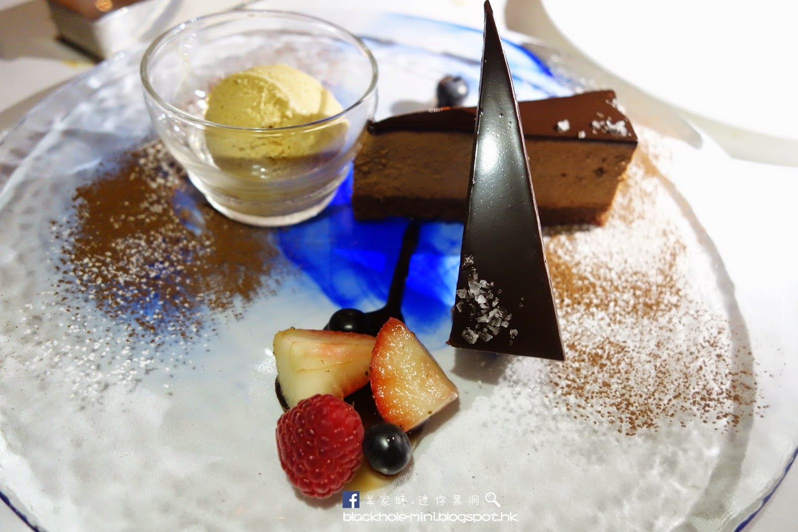 Sea salt chocolate truffle slice with Hong Kong style milk tea gelato。沒想到這海鹽朱古力松露蛋糕一客竟竟然有兩件,本來還擔心吃不完,但朱古力松露蛋糕雖然朱古力味濃郁,但感覺不會太漏,加上港式奶茶意式雪糕,好吃又夠地道特色。