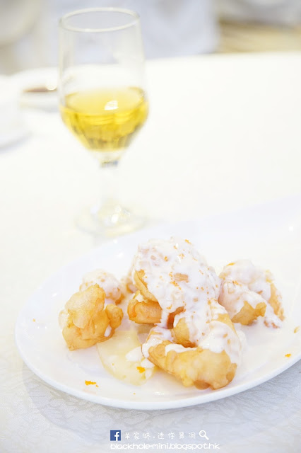 名門雪影蝦球。巨型的蝦球已不易找,難得在休漁期也有這貨色,不單彈牙且有蝦的鮮味,脆漿厚薄亦適中,要是沙律醬汁味道再濃郁一點就更好。百里香牛肋排。中式的菜餚比較少見用到百里香這西式香草,雖然是黑椒汁作基底,但仍滲出淡淡的百里香味,加上肉質軟嫰又不失咬口的雪花牛肋肉,的確是很不錯的配合,另旁邊也有份量十足的麵條作伴,三四個人分享剛好,也不用額外點白飯。