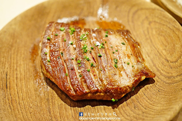 西班牙黑毛豬肋骨。烤至Medium Well,帶點焦香,豬肉的脂肪較多,油香十足,肉質也挺軟嫰。