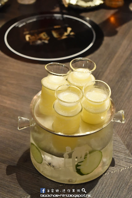 另外的夏日寒冰菠蘿醋鍋上來時煙霧迷漫,菠蘿醋鍋除了用鮮菠蘿,湯中也加了台灣菠蘿醋、海鮮和豬骨湯底,所以湯味不會像吃菠蘿的甜,如果不習慣這口味的話,食友仍可慢慢享用芫荽鍋配各式火鍋料。