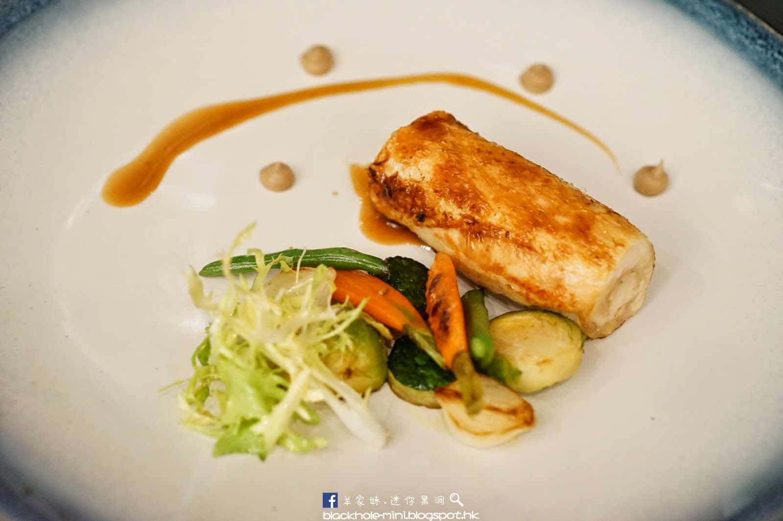 Pan Seared Slow Cooked Sole, Pomelo Salad, Fresh Micro Herbs。魚肉經過慢煮,竟然仍保留著彈性,配上牛油味極重的特製荷蘭汁與柚子沙律,相當有驚喜!