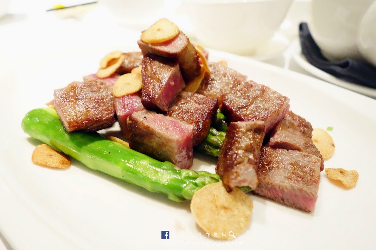 露筍蒜片牛肉粒。在這裡吃過數次,和牛油脂豐腴甘香,伴以爽脆的露筍和香脆的蒜片,每一次的水準都是那麼好。