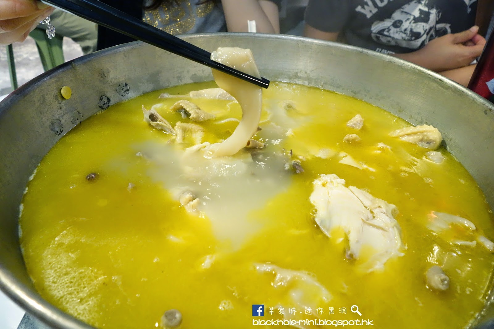鮮雞燉花膠湯。雖然這個鍋底賣$298有點貴,不過的確是真材實料,用原隻鮮雞去熬,再加入花膠,湯底非常濃郁鮮甜,但友人看到浮面的雞油有點害怕,所以努力的在撇走雞油。另外點這個雞湯會有一個專屬的大壼,裡面都是濃濃的雞湯,因此湯底從頭到尾都沒有變淡,利用最後的精華來煮粉麵或烏冬吃,簡直是美味到極點。