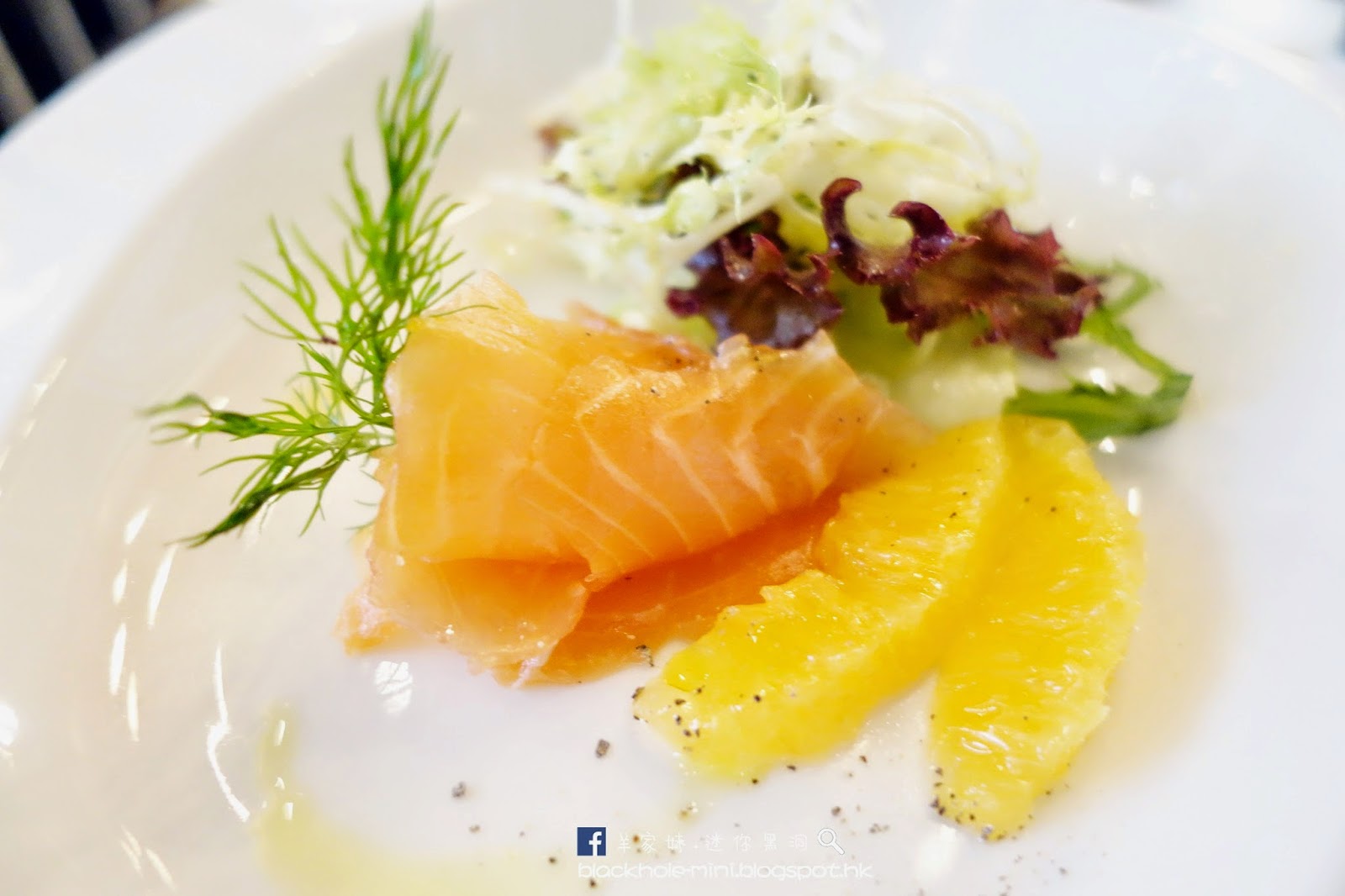 柑橘醃三文魚香橙沙律。以柑橘醃過的三文魚,味道酸酸甜甜,加上香橙肉與新鮮沙律菜,開胃清新健康。