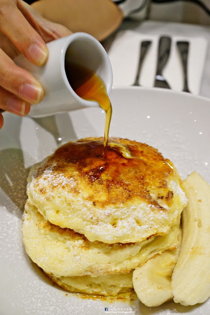 Ricotta Cheese Pancake。這個班戟是一吃難忘,可算是暫時吃過最美味的,口感獨特中帶芝士香,只是簡單的加了牛油和糖漿,已令人吃不停口。