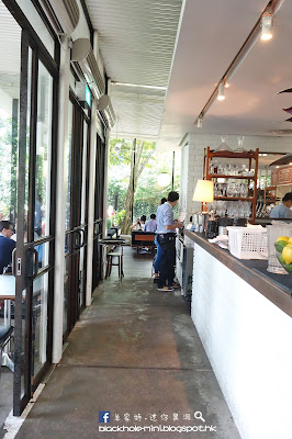 這裏有室內和室內的座位,室外設有風扇,可是天氣有點熱,還是坐在室內比較舒適,不過室外也坐了不少外國人。室內樓底很高,三面落地大玻璃,加上窗外翠綠的景緻,愛逛咖啡店的人不會不喜歡這樣的環境吧,只是室內的檯放得比較近。
