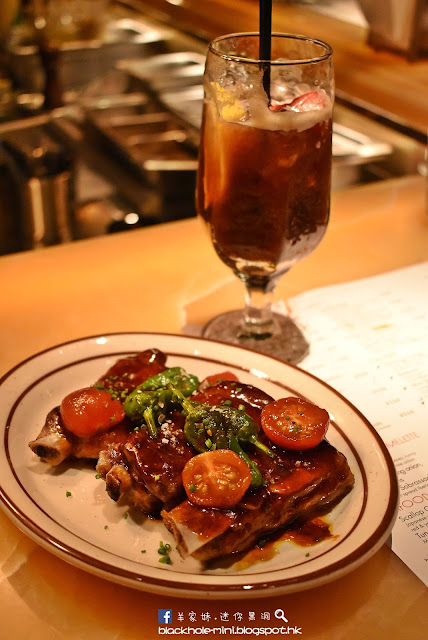 這客二百多元的Spanish Carabinero紅蝦菜式聽起來不便宜,但吃過就知值不值,不單是紅蝦本身充滿蝦膏質素高,濃郁的醬汁也功不可沒,難怪店家另附上香草麵包粒用來沾醬汁吃,這樣便不會浪費掉美味的蝦膏醬汁。豬肉菜式的Iberico Pork Ribs是經過12小時慢煮的豬肋肉,一切開就瞬間骨肉分離,肉質肥瘦均勻又肉味濃郁,其實伴碟的西班牙小青椒與車厘茄同樣做得美味,所以碟中最後只餘下三條豬肋骨。